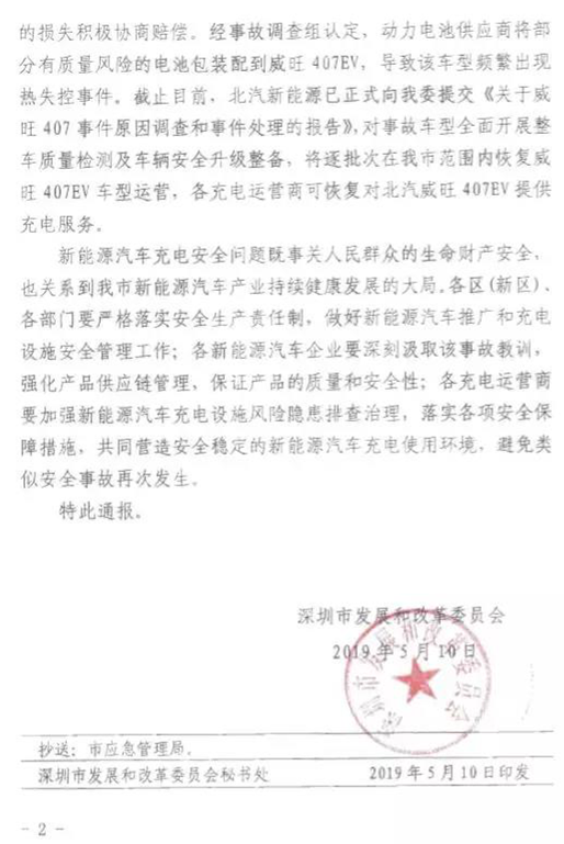針對該車型暴露出的嚴重安全問題,北汽新能源表示,將對事故車型全面開展整車質量檢驗及車輛安全升級整備。深圳市發改委也表示,在整改完成后,將逐批次在深圳市范圍內恢復威旺407EV車輛運營,各充電商可恢復對北汽威旺407EV提供充電服務。