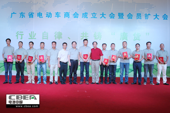 7月13日下午,廣東省電動車商會成立大會暨第一次會員擴大會議在廣州白云國際會議中心隆重舉行。圖為授牌儀式。