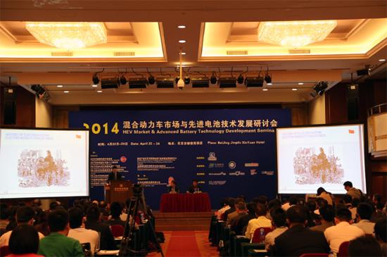 4月22日-24日,由中國化學與物理電源行業(yè)協會主辦的“混合動力車市場與先進電池技術發(fā)展研討會”在北京召開,300多位國內外代表與會。本次研討會以油電混合動力車、啟停汽車以及對應的電池技術為主要議題,旨在為業(yè)內人士提供一個交流的平臺,了解國內外在混合動力車產業(yè)方面的發(fā)展動向和最新進展,共同探討適用于混合汽車發(fā)展的電池技術以及最新的發(fā)展。圖為研討會現場嘉賓正在發(fā)表主題演講。