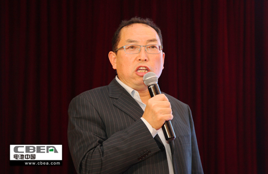 圖為中國(guó)化學(xué)與物理電源行業(yè)協(xié)會(huì)秘書(shū)長(zhǎng)劉彥龍先生做主題演講
