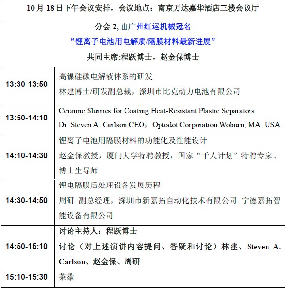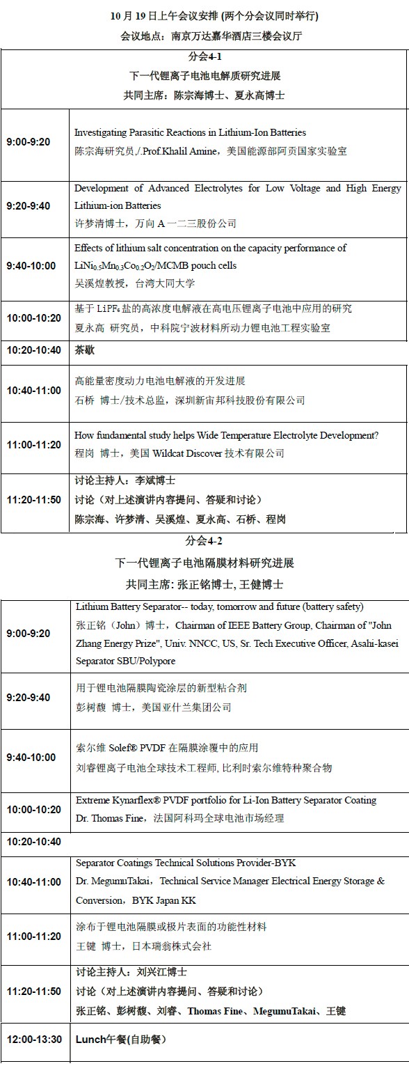 以大會演講方式進行,并設有中英文現場同聲翻譯(第一天大會場、第二天分電解液、隔膜分會場)。