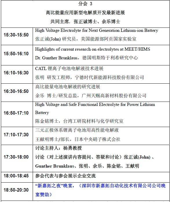 第三屆新型電池電解質/隔膜材料技術國際論壇