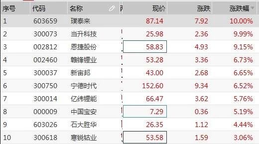 A股開盤,動力電池產業鏈活躍,璞泰來(84.800, 5.58, 7.04%)、恩捷股份(56.970, 3.07, 5.70%)、當升科技(25.980, 2.36, 9.99%)漲停,寧德時代(149.300, 6.04, 4.22%)等跟漲。