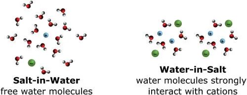 研究人員表示:“水溶鹽電解液指的是極少量的水加高濃度的鹽組成的溶液,水的量剛好能夠溶解離子,促成溶劑的形成。與傳統(tǒng)解決方案不同,該系統(tǒng)不含游離水。”此外,只有由一個(gè)大的陰離子與一個(gè)小的陽(yáng)離子組成的鹽分子才可被溶解。例如,雙三氟甲烷磺酰亞胺鋰(CF3SO2NLiSO2CF3)、氯化鈉或食鹽都沒有用,因?yàn)樗鼈兊年?yáng)離子和陰離子大小相似。