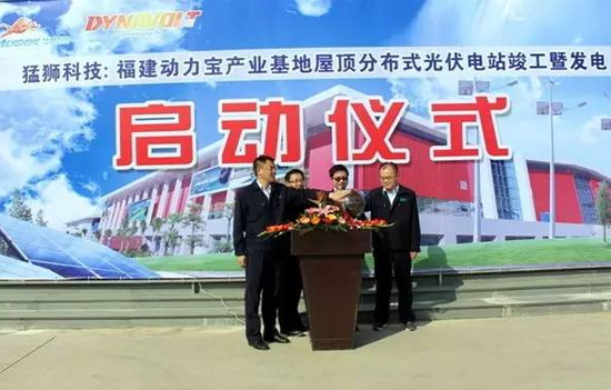 2015年12月31日,猛獅科技福建動(dòng)力寶產(chǎn)業(yè)基地屋頂分布式光伏電站竣工并正式投入運(yùn)行,猛獅科技副董事長賴其聰、副總裁王亞波、李青海,福建動(dòng)力寶總經(jīng)理周錫方等出席啟動(dòng)儀式。