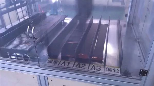 自動(dòng)化的機(jī)器將每段打上鎳帶和絕緣耐高溫的麥拉片(Mylar),下一步進(jìn)行5個(gè)級(jí)別的稱重,分別是偏重、A1、A2、A3、偏輕。這個(gè)跟CPU晶圓挑選一樣,同一批切割工藝,也會(huì)出現(xiàn)不同體質(zhì),根據(jù)不同體質(zhì)再分出對(duì)應(yīng)容量,配對(duì)出貨。