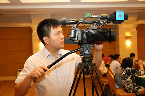 2014年5月29日,電池行業垂直媒體平臺——《電池中國》網站上線新聞發布會在京隆重舉行。圖為攝像師正在進行現場拍攝。