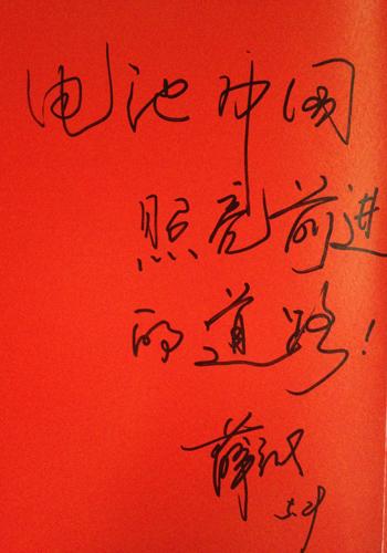 中國互聯(lián)網(wǎng)新聞中心副總編輯薛立勝先生為電池中國網(wǎng)站題寫寄語