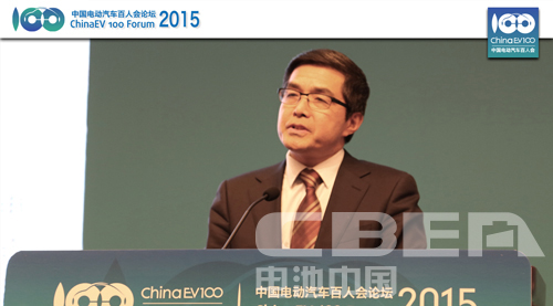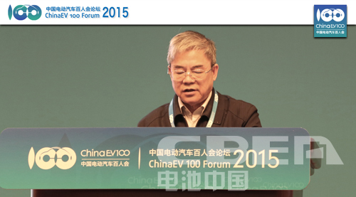 中國電動汽車百人會執行副理事長歐陽明高在論壇上做主題演講