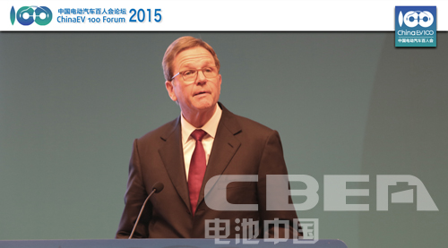 比亞迪股份公司董事長王傳福在論壇上做主題演講