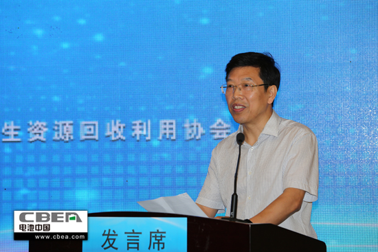 中國電池工業協會理事長韓作樑在成立儀式上致辭