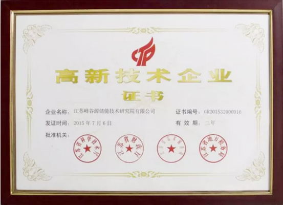 [摘要]近日,廣東猛獅新能源科技有限公司(下文簡稱猛獅科技)旗下江蘇峰谷源儲能技術研究院有限公司(下文簡稱江蘇峰谷源)獲得由江蘇省科學技術廳、江蘇省財政廳、江蘇省國家稅務局和江蘇省地方稅務局聯合頒發的《高新技術企業證書》,成為一家省級儲能領域高新技術企業。