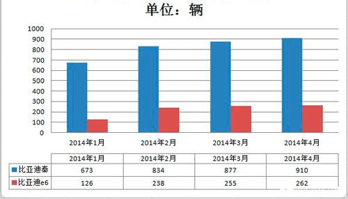 5月12日,比亞迪銷售有限公司副總經理李云飛公布了比亞迪4月銷量數(shù)據(jù),新能源車型銷量連續(xù)上漲:秦4月銷量為910輛,1-4月累計3294輛;e6銷售262輛,1-4月累計售出881輛。