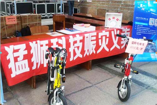 在活動中,猛獅科技將正在熱銷的一秒鐘折疊式電動自行車作為義賣商品,共計籌得3萬元善款,全部捐助給魯?shù)闉?zāi)區(qū)人民。