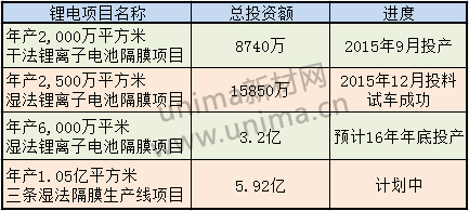 重慶云天化紐米科技有限公司成立于2010年2月,位于重慶長壽經濟技術開發區。2015年隔膜銷售額為1.5億元,毛利率為25%。