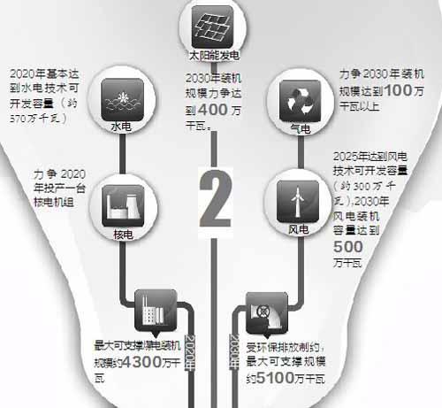 根據(jù)規(guī)劃,江西省將進一步挖掘水電裝機潛力,2020年基本達到水電技術可開發(fā)容量(約570萬千瓦),同時積極推動抽水蓄能電站建設;核電方面,江西省將密切跟蹤國家內陸核電政策,力爭2020年投產一臺核電機組;氣電方面,江西將根據(jù)非常規(guī)天然氣資源開發(fā)情況適時啟動天然氣分布式發(fā)電建設,力爭2030年裝機規(guī)模達到100萬千瓦以上;風電建設方面,江西將加快風能資源的分散開發(fā)利用,2025年達到風電技術可開發(fā)容量(約300萬千瓦),隨著低風速發(fā)電技術的成熟和推廣,2030年風電裝機容量有望達到500萬千瓦;鼓勵建設分布式太陽能光伏發(fā)電系統(tǒng),2030年裝機規(guī)模力爭達到400萬千瓦。