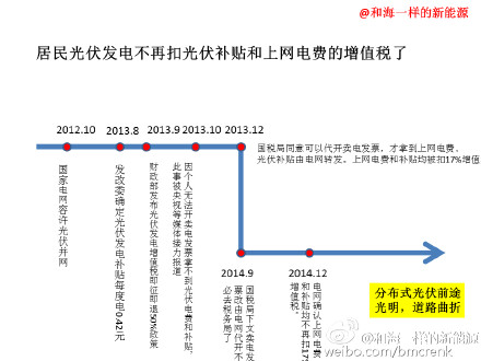報(bào)道“中國自建光伏電站第一人”任凱通過微博透露:“得到國家電網(wǎng)北京順義供電公司通知,個(gè)人光伏發(fā)電的上網(wǎng)電費(fèi)和光伏補(bǔ)貼不再扣取17%的增值稅,以前扣的將于明年1月退還。”同時(shí)記者了解到,上海松江一光伏電站業(yè)主12月29日已經(jīng)拿到了下半年光伏發(fā)電的國家補(bǔ)貼,而且從這個(gè)月起國家0.42元/度的補(bǔ)貼將不再扣除17%的增值稅,之前扣除的也已經(jīng)返還給她。此后,售電部分也將不再扣增值稅。但是地方補(bǔ)貼部分是否會(huì)扣除增值稅還需要地方細(xì)則。