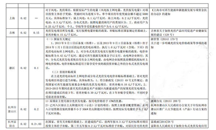 [摘要]自2013年8月國家發改委將全國范圍內分布式光伏補貼標準定為0.42元/度后,全國各省份在此基礎上又陸續推出了當地補貼政策。