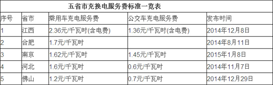 五省市充換電服務(wù)費(fèi)標(biāo)準(zhǔn)