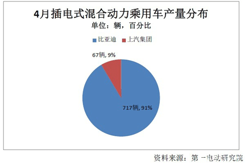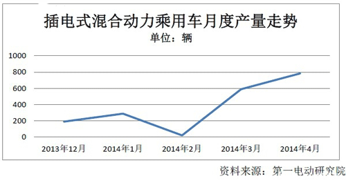 在城市高速電動車市場,插電式混合動力乘用車優勢明顯。4月,784輛插電式混動車型產出,是第一電動研究院有統計以來的最高值。