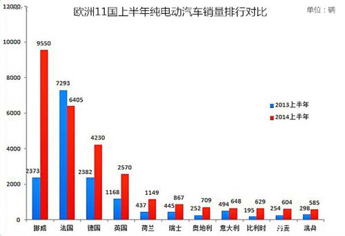 從歐洲主要國(guó)家銷量分布看,挪威今年上半年累計(jì)銷售9550輛純電動(dòng)汽車,是2013年的四倍多,市場(chǎng)份額更接近33%,雄踞銷量之冠。第二名是法國(guó),6405輛的成績(jī)使之失去了去年同期的冠軍寶座,銷量下降12%,純電動(dòng)汽車市場(chǎng)市場(chǎng)份額從44%跌至22%。2013年上半年,法國(guó)純電動(dòng)汽車銷量為7293輛。