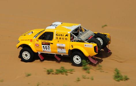 首屆中國阿拉善沙漠挑戰賽暨阿拉善明星環保公益行(A-rally)于今天展開了第一賽段(天鵝湖賽段)的較量,力伴電池車隊的韓魏/陳峰和李鵬程/劉雪原分別從23和25位向前追趕。在SS1結束之后,李鵬程已經追到了第十名,而韓魏更夸張,已經追到了全場第三的位置。
