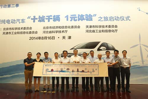 在“十城千輛 1元體驗”啟動儀式上,北汽新能源宣布,北汽純電動汽車體驗之旅一直將持續(xù)至春節(jié)前后,范圍覆蓋天津、青島、南京、常州、蘇州、杭州、上海、長沙、廣州、深圳等10個城市。