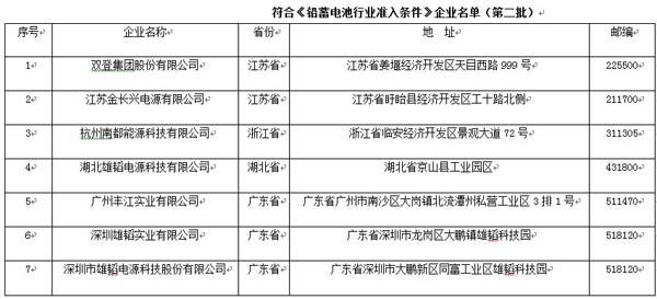 符合《鉛蓄電池行業(yè)準(zhǔn)入條件》企業(yè)名單(第二批)