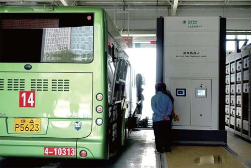 記者從公交四公司了解到,鄭州公交新引進(jìn)的首批15輛換電式電動公交車8月19日在14路上正式投入運(yùn)營。這批公交車采用9節(jié)大容量的鋰電池,每次換電池時間僅需8至10分鐘,與以前的充電式電動公交相比,運(yùn)行效率大為提高。