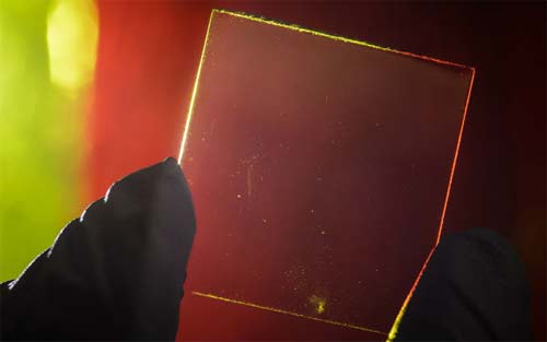 該技術的原理是,在一塊普通的透明面板上,涂上有機分子的涂層。然后這個涂層能夠吸收太陽中的不可見光線,包括紫外線和近紅外線。在吸收了光線的能量后,它會發出一種特殊波長的紅外線,并引導到面板的邊緣的光伏太陽能電池上,從而將太陽能轉換為電能。由于該材質吸收和發出的光線都是不可見的,因此在人眼看來,這塊面板是透明的。