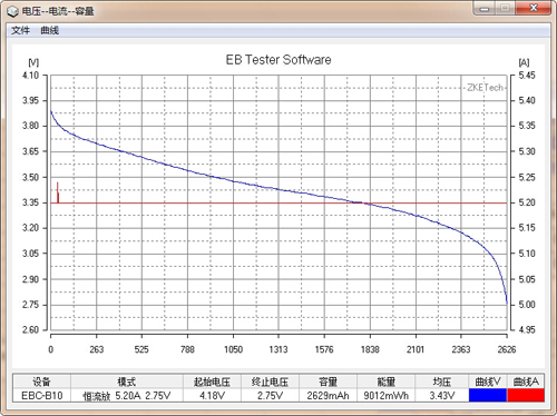 2C放電,得出2629mAh。