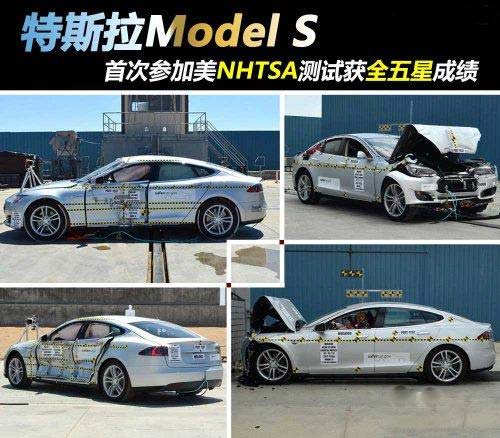 特斯拉在NHTSA(美國高速公路安全協(xié)會)進行了數(shù)次碰撞測試,包括100%正面碰撞、27°角側面碰撞、75°角側面柱碰和翻滾碰撞、車頂強度等碰撞測試。在100%正面碰撞測試中,由于特斯拉汽車“發(fā)動機艙”內不需要安裝動力總成,有足夠的空間來安排提高車身強度的結構,可以更好地保護乘員艙及車身下方的電池組。由于電池分布在車底,電機位于后車橋,前部沒有動力總成,整車的重量基本都集中在車輛底部和尾部并且重心較低,所以在正面碰撞測試中,車尾并沒有出現(xiàn)大幅度抬起的情況。