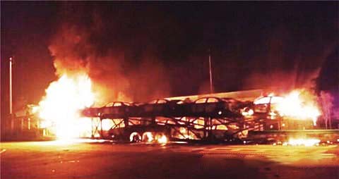 20輛從比亞迪西安工廠運往重慶的新能源插電式混合動力“秦”,近日在京昆高速安康段偶遇大火,被燒成灰燼全部報廢。盡管火災現場烈焰熊熊,但人們最為關心的電池并沒有發生爆炸。