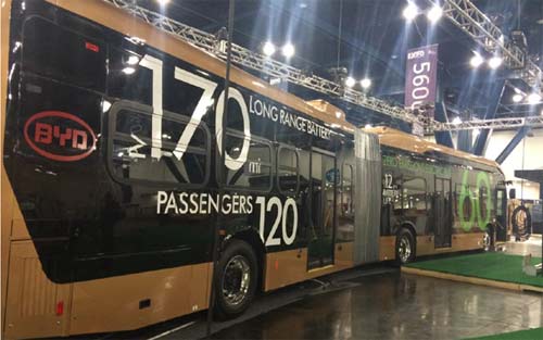 近日,比亞迪在2014年美國公共交通技術與設施展覽會上推出了全球最大的電池電動車——“蘭卡斯特”,“蘭卡斯特”是一輛鉸鏈式純電動大巴,車身長18米,歷經2年研發,單次充滿電、滿載情況下續航超270公里,可搭載120名乘客。