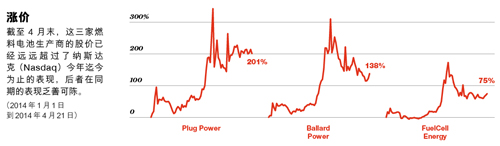 如果股價大幅飆升的燃料電池股背后的這些公司要兌現它們的承諾,而且讓它們的高市值也名副其實,它們就一定要找出迅速擴大規模的辦法。換言之,就是要開拓亞洲和歐洲市場。近幾年來,僅韓國就購買了300兆瓦美國產的燃料電池。4月底,Plug Power宣布與現代公司組建合資公司,在亞洲市場銷售燃料電池。韓國的浦項制鐵公司(Posco)從FuelCell Energy公司獲得了特許技術使用權,組建自己的工廠。
