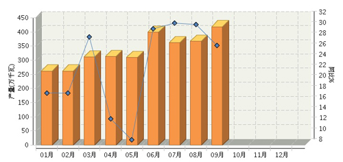 根據(jù)國(guó)家統(tǒng)計(jì)局公布數(shù)據(jù),全國(guó)太陽(yáng)能電池行業(yè)累計(jì)完成產(chǎn)量3,382.47萬(wàn)千瓦,同比增長(zhǎng)27.30%。其中:9月份完成產(chǎn)量418.53萬(wàn)千瓦,同比增長(zhǎng)26.74%。2014年全國(guó)太陽(yáng)能電池行業(yè)月度產(chǎn)量及同比如上圖所示。
