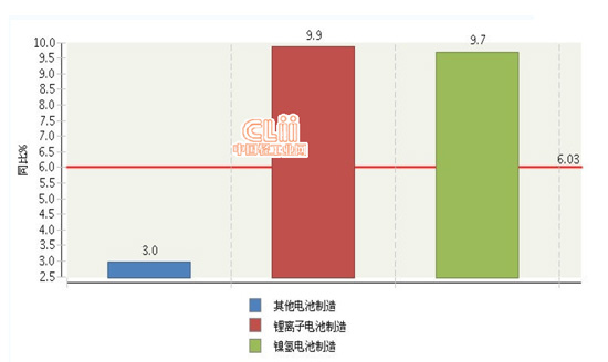 圖8 2014年1~9月全國電池行業累計主營業務收入行業小類同比增長情況
