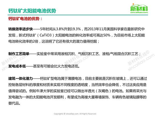[摘要]作為太陽能電池家族中的一員,鈣鈦礦太陽能電池正慢慢嶄露頭角。鈣鈦礦太陽能電池不僅擁有第一代太陽能電池高轉化效率的特點,還有第三代太陽能電池薄膜、柔性化的特點,可用于溶液法卷對卷生產。因此,鈣鈦礦太陽能電池被認作是最有前景的“冉冉新星”。