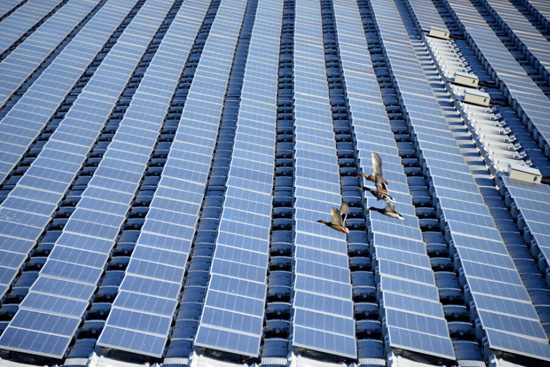 日本埼玉縣桶川市當地水庫內,目前已建設完成的水上太陽能發電站。12400平方米的水面上漂浮著4500塊太陽能電池板,而水面面積達3萬平方米的水庫,及其周邊河流充足的水源,都擁有良好的冷卻效果。