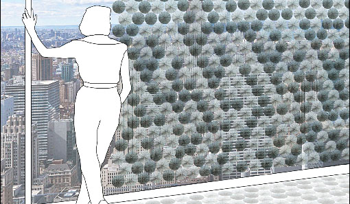 這款遮光墻面,熱量來源是陽光照射。當陽光強烈,熱量使得鎳鈦合金線改變形狀,元件上的織物折疊,阻止光照進入玻璃墻內(nèi)部。等到日落或者是多云天氣,鎳鈦合金線就恢復到原先的形狀,讓織物延展,遮光墻表面變透明。