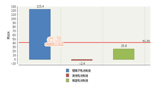 2015年1-2月全國(guó)電池行業(yè)累計(jì)利潤(rùn)總額行業(yè)小類同比增長(zhǎng)情況