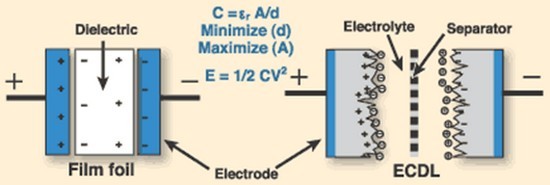 超級(jí)電容器的電介質(zhì)耐壓很低,制成的電容器一般耐壓僅有幾伏,儲(chǔ)能水平受到耐壓的限制,因而儲(chǔ)存的能量不大;