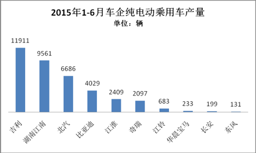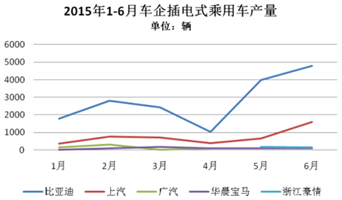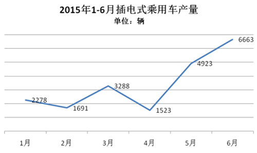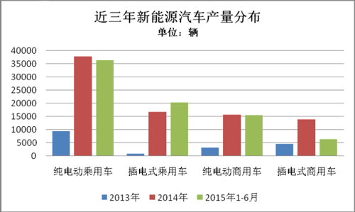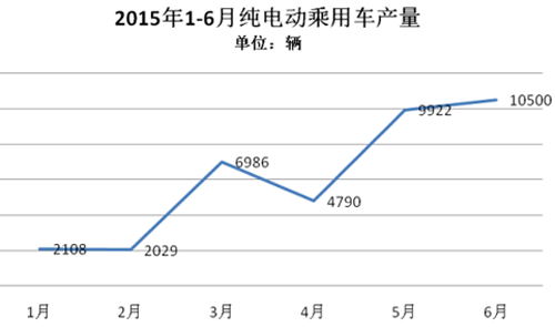 2015年1-6月,純電動乘用車生產(chǎn)3.63萬輛,接近去年全年3.78萬輛的產(chǎn)量,同比增長3倍。