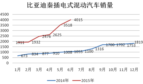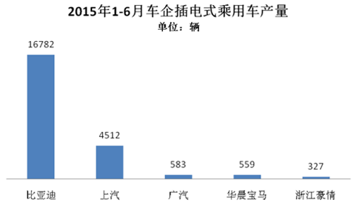 2015年1-6月,插電式混合動力乘用車生產(chǎn)2.04萬輛,同比增長4倍。插電式乘用車在所有新能源車型中增長速度最快。