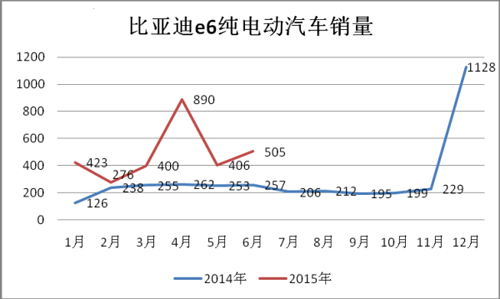 純電動汽車e6主要定位出租車市場,4月因中標(biāo)武漢純電動出租車項目沖高,5月回落到406輛,6月又上500輛。除了2月受春節(jié)假期的影響外,e6電動車每月的銷量都保持在400輛左右,市場銷售相對穩(wěn)定,1-6月累計銷售2900輛。e6也推出了新版車型,新e6今年2月登入節(jié)能與新能源汽車目錄,該車換裝了磷酸鐵錳鋰電池,能量密度進(jìn)一步提升,續(xù)航也得到擴展,新版e6將繼續(xù)主打出租車市場。
