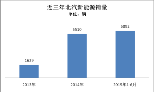 根據(jù)乘聯(lián)會數(shù)據(jù)統(tǒng)計,北汽新能源2015年1-6月累計銷售新能源乘用車5892輛。北汽新能源堅持純電動技術(shù)路線,推出的新能源車型包括E150EV、EV200、EV160、ES210等均為純電動車型。2014年銷量為5510輛,2013年銷量為1629輛。