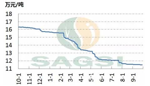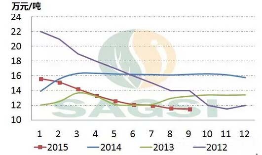 圖1 2014年10月~2015年9月國內(nèi)多晶硅價(jià)格走勢