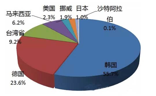圖3 8月份中國多晶硅進(jìn)口來源地統(tǒng)計(jì)(按量)