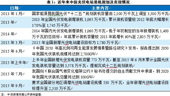 發(fā)展清潔能源是國(guó)內(nèi)能源結(jié)構(gòu)調(diào)整的重要方向,光伏作為重要清潔發(fā)電資源近年來(lái)發(fā)展勢(shì)頭良好,2015年上半年提前完成光伏“十二五規(guī)劃”3,500萬(wàn)千瓦裝機(jī)的規(guī)劃。同時(shí),2014年我國(guó)向《聯(lián)合國(guó)氣候變化框架公約》秘書處提交的自主貢獻(xiàn)文件中承諾,2020年我國(guó)光伏裝機(jī)總量將達(dá)到100GW(1億千瓦),整體光伏電站裝機(jī)提升空間仍較大,2016~2020年年均裝機(jī)規(guī)模平均約1,000萬(wàn)千瓦,目前相關(guān)主管部門正在制定十三五規(guī)劃,考慮到目前的裝機(jī)速度和規(guī)模,十三五規(guī)劃光伏裝機(jī)目標(biāo)或?qū)⒋笥趯?duì)2020年100GW光伏裝機(jī)的承諾。長(zhǎng)期來(lái)看,光伏作為重要清潔電源發(fā)展空間廣闊,未來(lái)長(zhǎng)期增長(zhǎng)仍可持續(xù)。