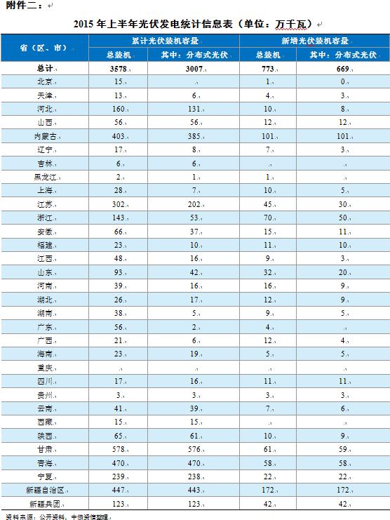 截至2015年6月末,全國(guó)光伏發(fā)電裝機(jī)容量達(dá)到3,578萬(wàn)千瓦,上半年全國(guó)新增光伏發(fā)電裝機(jī)容量773萬(wàn)千瓦,完成1,780萬(wàn)千瓦光伏裝機(jī)目標(biāo)相的43%。中債資信2015年3月發(fā)布的《光伏電站發(fā)展再提速,光伏制造景氣度有望企穩(wěn)回升》中判斷“目標(biāo)的完成將是水到渠成”,考慮光伏電站在下半年通常會(huì)出現(xiàn)搶裝高峰,完成1,780萬(wàn)千瓦的裝機(jī)目標(biāo)應(yīng)該為大概率事件。3月國(guó)家能源局制定目標(biāo)同時(shí)也提出“7月底前,經(jīng)綜合平衡后,對(duì)建設(shè)進(jìn)度快的地區(qū)適度追加規(guī)模指標(biāo)”,此次調(diào)增裝機(jī)規(guī)模也是對(duì)上半年光伏行業(yè)裝機(jī)情況的一個(gè)總結(jié)和合理追加。